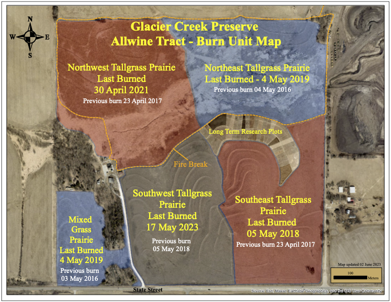 Figure 2: Burn units of the Allwine Prairie Tract of Glacier Creek Preserve.