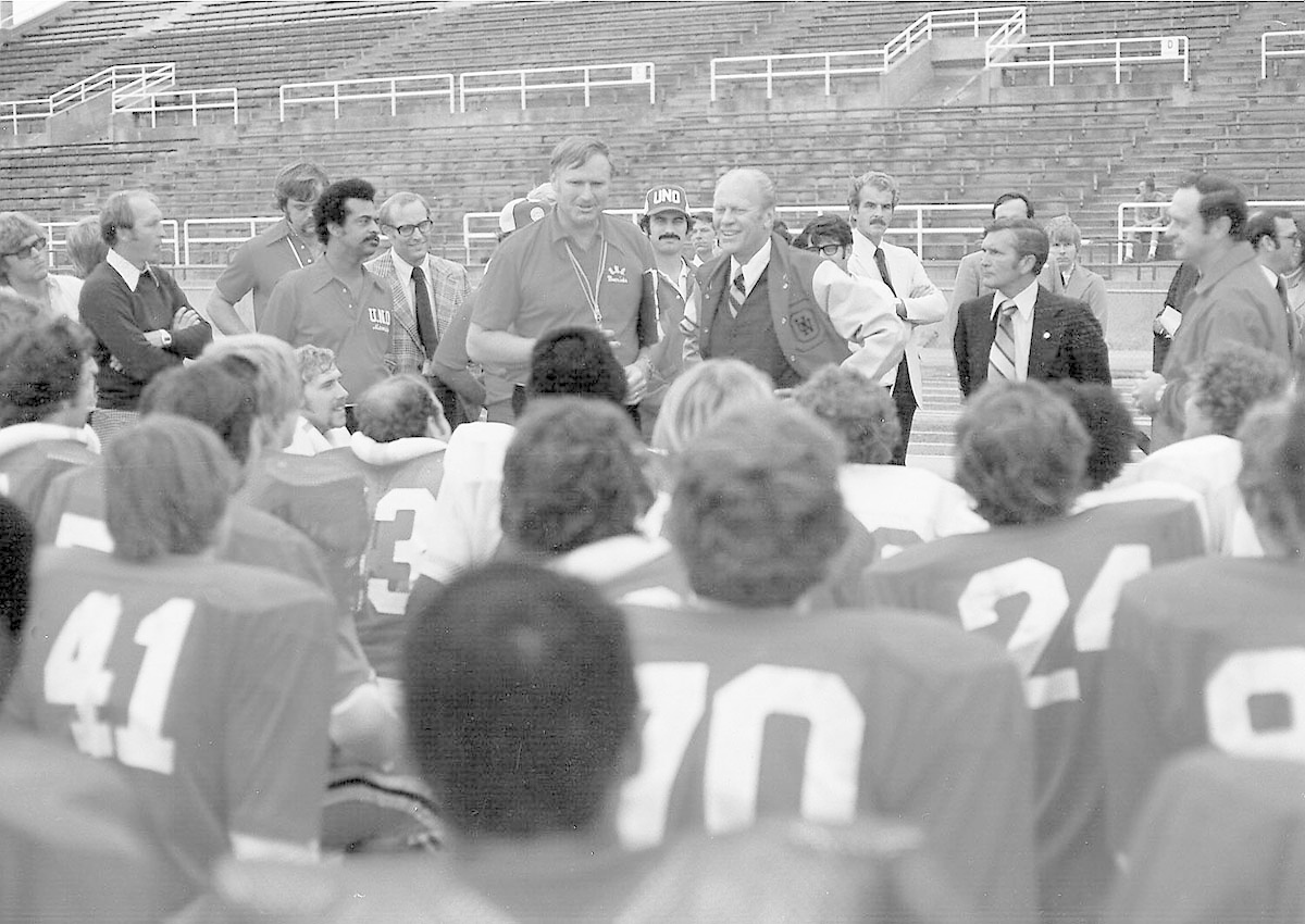 President: Gerald R. Ford (visits with UNO football team - image below)