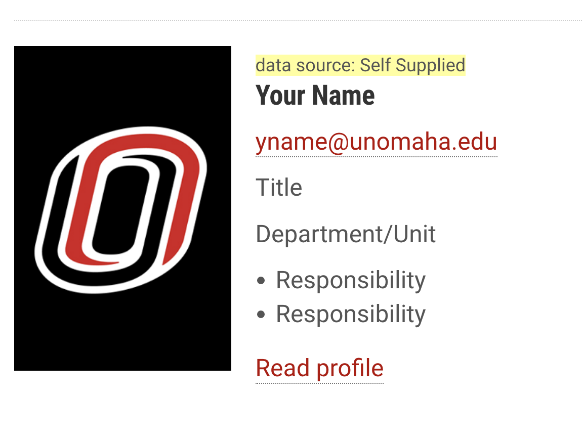 If you want to pull information from the Employee Directory or Watermark Faculty Success (formerly Digital Measures), you only have to supply the NetID (e.g. jsmith) and the headshot.